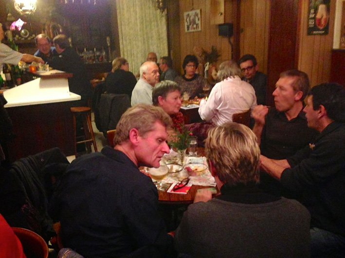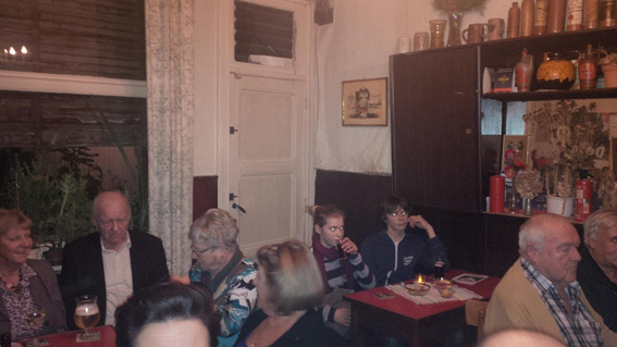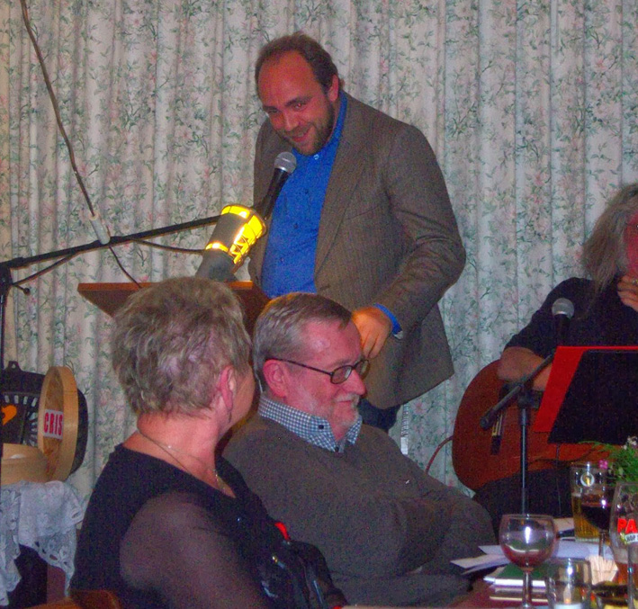 Ikzelf wenste een regering langer dan een poging en vroeg licht voor elke onderbelichte mens. Ook Frederik beloofde licht in midwintertijd. En… als dat allemaal niet lukt, schudt Kris wel een vuurtje uit zijn mouw. De vrolijke noot kwam uiteindelijk van kapoentje Chris in zijn zelfgemaakte nieuwjaarsbrief. Maar… hoorde ik een beetje sarcasme in zijn stem toen hij zich afvroeg waarom de Stuifmelers op dat moment niet op de Brusselse betoging waren. Misschien zaten daar al die anderen, die op 23 januari hun kat stuurden en heel wat fluwelen stoelen van de Erardzaal onbezet lieten.Deze gedachte werd al snel doorgespoeld op een receptie om meer dan duimen en vingers af te likken. Gilberte