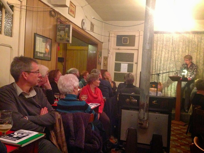 Stuifmeel werd samen met twaalf dichters uit Nederland en Vlaanderen en heel wat luisteraars ontvangen in ‘Het laatste huis’ in de Poreistraat te Hombeek. Het werd een gastvrije, boeiende, creatieve en communicatieve poëzieavond.